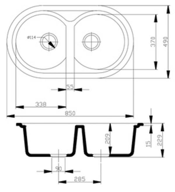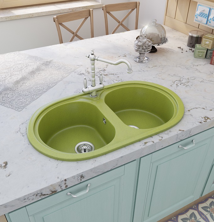 • Fregadero curvo de 2 cubetas de gran