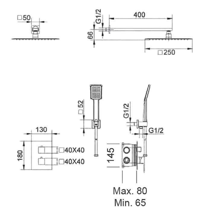 Alexia Empotrada Termostática (Cuadrada y pared)