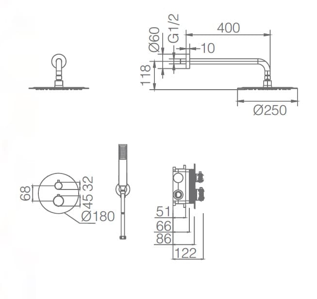 • Mango ducha redondo*.