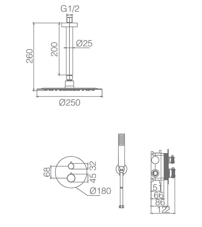 Alexia Empotrada Termostática (Redonda y techo)