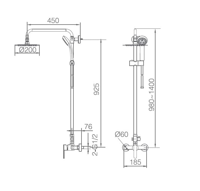 • Columna de ducha acero inoxidable, extensible 95/132 cm.*