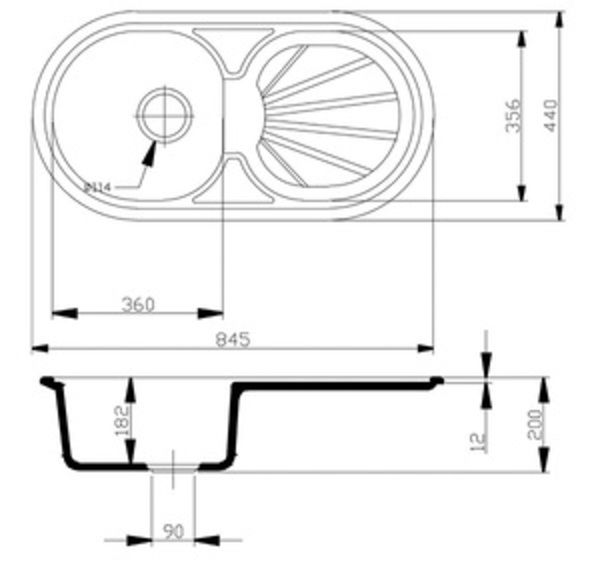 •• Fregadero (reversible) curvo de 1 cubeta y